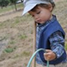 Next, we headed outside (where it was cold after a week of 80 degree weather). At least it wasn’t raining. We opted for traditional games – apple bobbing and donut on a string. It was hysterical to watch the kids try to eat the donut while it was swinging around on the string. Here are a couple of my favorites.